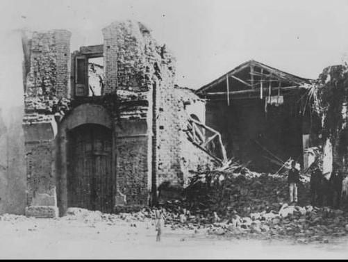 García tomó una foto de la destruida iglesia de los Dolores y logró reconstruirla digitalmente, aportándole color. La imagen de abajo es de 1894, posterior al terremoto.