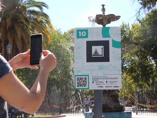 El funcionamiento es sencillo: a través de los teléfonos celulares y con código QR, se pueden recrear distintos puntos de la antigua Ciudad de San Juan alrededor de la plaza 25 de Mayo. Además, la idea es que con el tiempo esto se extienda a otras zonas de la provincia.