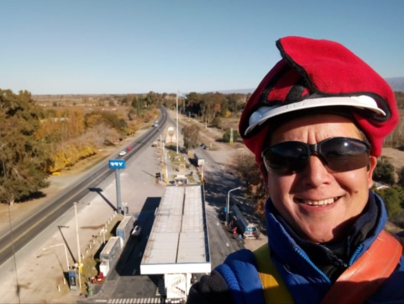 “Es un trabajo apasionante, pero también muy profesional. Yo siempre digo que cualquiera podría subirse a una torre. El tema es desempeñarse arriba, trabajar con equipos, moverse en las alturas, darse vuelta, porque a veces subís equipos pesados y hay que saber utilizarlos. Hay que estar un poco loco porque tu vida pende de un cinto, saber engancharse, porque si no, ante cualquier mareo o resbalón, no la contás. Es complicado. Hay que ser muy profesional”, dice y se pone serio al momento de hablar del tema.