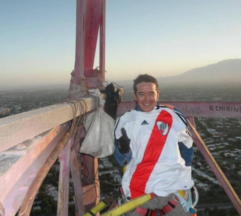 ¿Cómo surgió la idea de subir a las antenas con la casaca de River? “Tenía un compañero de Boca y jodíamos con qué equipo llegaba más alto y después se me hizo costumbre. Camiseta, gorra, cuellera, siempre trato de ponerme algo como para mostrar que River está ahí arriba”, dice con una sonrisa de oreja a oreja.