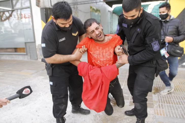 Finalmente y mientras cantaba una canción, el sujeto fue trasladado hasta un patrullero.