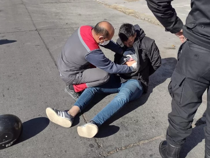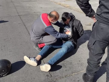 A las 13,10 una mujer alertó a un patrullero en Alvear y San Rafael que estando en el interior de su vehículo estacionado en la calle San Rafael a la altura 1720 oeste, mientras revisaba su celular, un sujeto abrió la puerta del acompañante y sacó su cartera de cuero de color negra que estaba en el asiento. La mujer describió que el ladrón tenía moto, campea y casco de color negro. Los policías ven al supuesto motochorro y comenzó la persecución que terminó a media cuadra del Centro Cívico, porque el motociclista inpactó en la parte posterior de un Ford Fiesta color blanco.