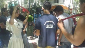 San Juan, 4 de Enero.- El cruce de las peatonales se convirtió en un escenario por el que pasaron bailarines y músicos vallistos que buscan atraer turistas a aquel departamento durante esta temporada de verano 2014.