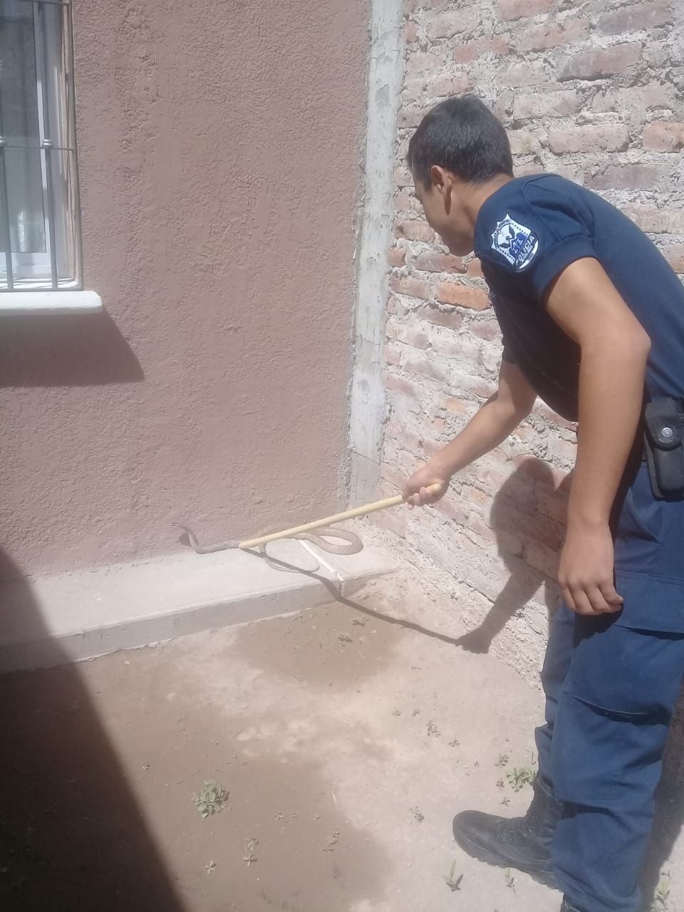 Una serpiente de gran tamaño se encontraba en el ingreso de una de las viviendas. Efectivos policiales de la Comisaría 25 llegaron hasta el lugar y lograron atraparla sin causarle daño alguno.