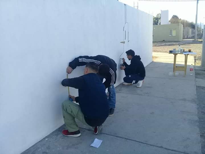 Le pidieron que esa imagen la plasmara en una de las paredes del barrio y el resultado fue espectacular. Tal como lo muestran las fotos, Matías no estuvo solo en el diseño y recibió la ayuda de varios vecinos del barrio, ubicado en las inmediaciones de Benavídez y Díaz, en Chimbas.