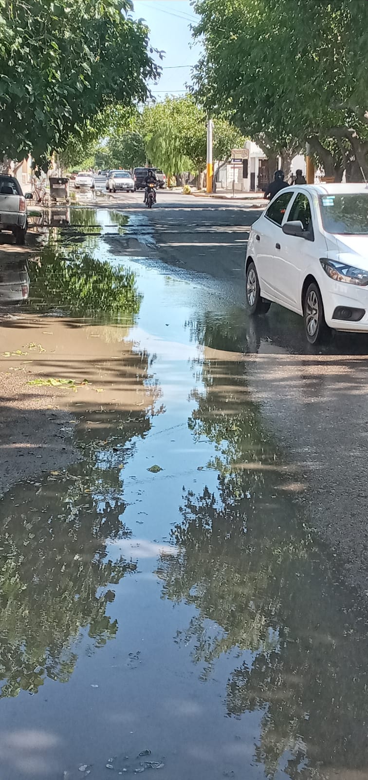 "Ya hace 8 días que el un caño está roto, el agua hace un recorrido de casi 2 cuadras y ocupa casi la mitad de la calzada", comentó al respecto Mario Toro.