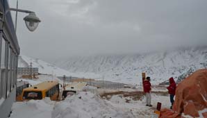 San Juan 28 de mayo.- Los 5966 empleados que actualmente trabajan en el emprendimiento Veladero y Lama Pascua, no pueden bajar ya que el tránsito se encuentro cortado por las malas condiciones climáticas. Según informaron desde la firma Barrick, en las últimas horas cayeron unos 15 centímetros de nieve, registrándose vientos de 125 kilómetros por hora.