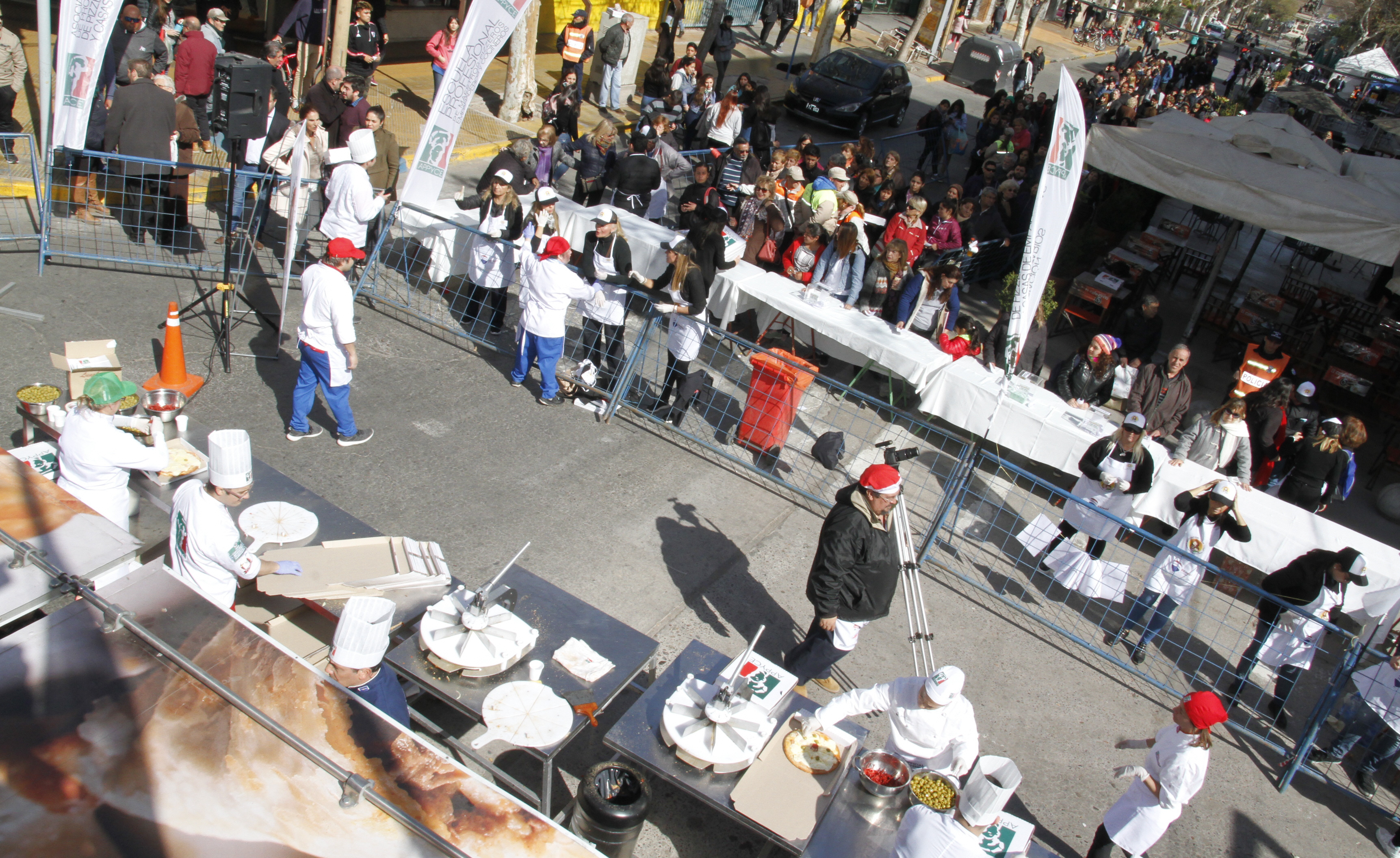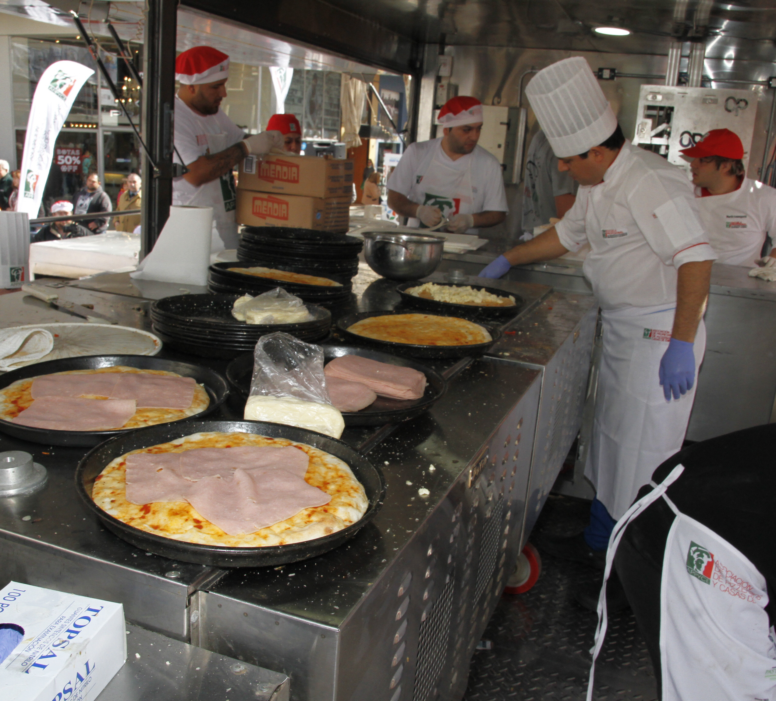 La misma postal se mantuvo toda la mañana. Una columna de cinco hileras y más de 100 metros de largo, conformada por gente que quiso combinar buen comer con solidaridad. Fue en el evento "Todos somos Casa Cuna" que se realizó ayer en el microcentro y que incluyó la venta de 3.500 pizzas y 3.500 empanadas para ayudar a esta institución. Resultó exitoso y superó las expectativas de sus organizadores. Por hora, se vendieron unas 500 pizzas, más que en otras provincias donde también se llevó a cabo esta pizzeada solidaria, organizada por la Asociación de Propietarios de Pizzerías y Casas de Empanadas (Appyce).