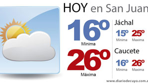 San Juan.-Los sanjuaninos podrán disfrutar hoy de una jornada agradable, en la que el que calor agobiante se tomará un descanso. El Servicio Meteorológico Nacional anunció una temperatura máxima de 26º con cielo algo nublado y vientos leves del sector Oeste. Mañana y hasta el lunes, el cielo estará algo nublado y no se descartan lloviznas.