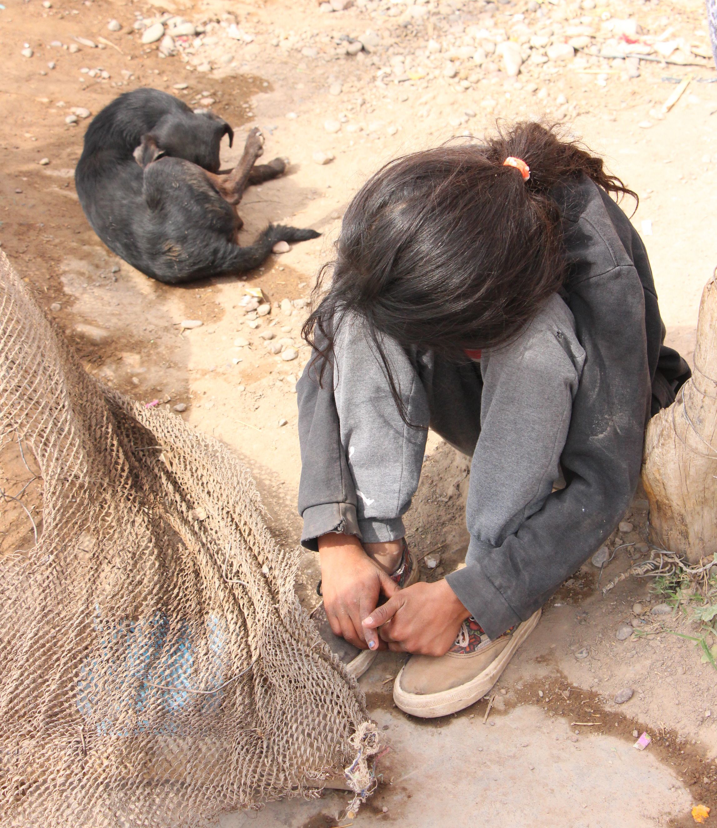 En casi todas las casas de la villa, los pisos son de tierra y tienen muchos perros que juegan con los niños.