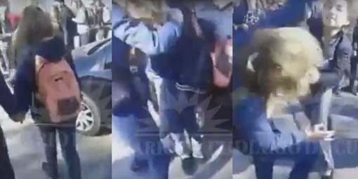 San Juan.- Terrible y violenta. Así es la pelea que protagonizaron dos alumnas de la escuela San Martín, tras salir del establecimiento y en plena calle 9 de Julio, en Capital.