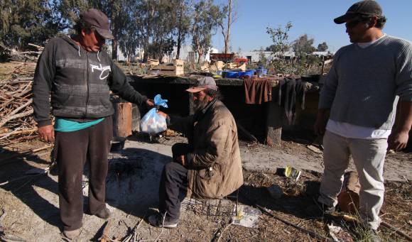 Los hombres sobreviven gracias a la solidaridad de algunos vecinos y cada tanto hacen una changa, como cuidar autos o juntar cartones para luego venderlos. Llevan viviendo en ese lugar entre dos y cinco años. Y, a pesar que les ofrecieron ayuda, dijeron que no quieren moverse de allí.