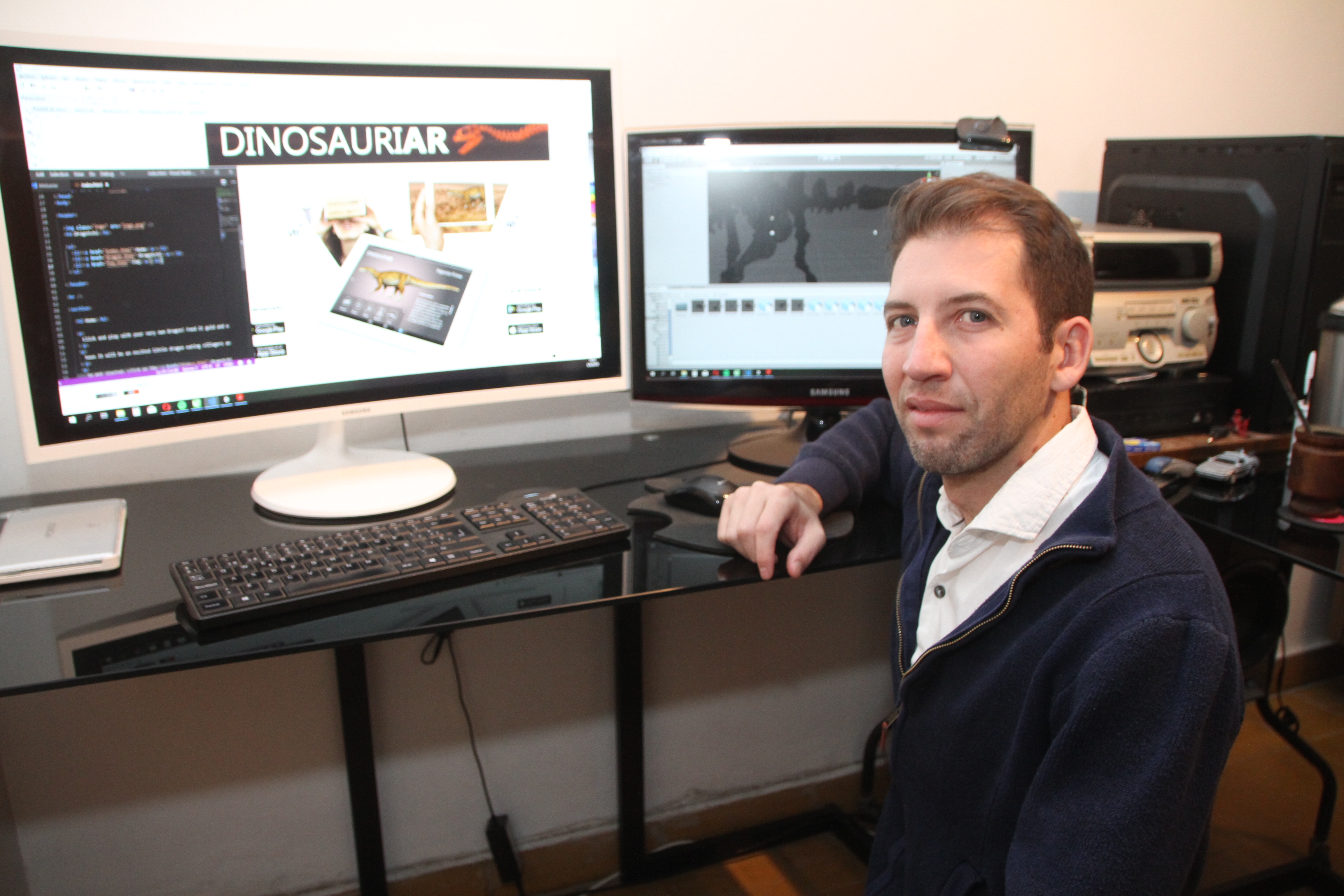 "Decidí apostar en 2015 por el desarrollo de aplicaciones, específicamente las de realidad aumentada y realidad virtual, como la que vamos a presentar dentro de poco sobre el dinosaurio Ingentia prima. Cualquier persona va a poder descargar en su celular la posibilidad de ver al dinosaurio caminando por la ciudad, pero en su hábitat natural, con las descripciones morfológicas y ambientales específicas, que han sido chequeadas científicamente por los paleontólogos sanjuaninos", comentó Leonardo.