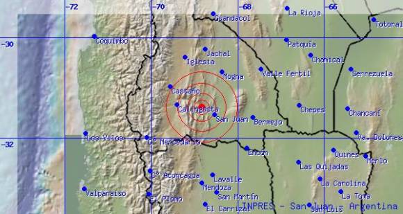 El epicentro se ubicó a 35 kilómetros en dirección oeste-noroeste de la ciudad de San Juan, en la Sierra de la Dehesa.