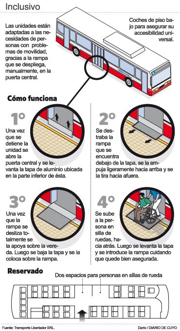 Desde hace unas semanas, algunas empresas de colectivos de corta distancia comenzaron circular con unidades adaptadas para personas que se movilizan en sillas de ruedas. Desde la Dirección de Tránsito y Transporte comentaron que en San Juan ya hay 4 empresas que tienen estos micros y a la vez comentaron que las demás empresas que hay en la provincia se comprometieron a ofrecer este servicio próximamente. “Es para que haya un colectivo por línea”, dijo Luis González, director de Tránsito. Actualmente las unidades para discapacitados que están circulando son 5.