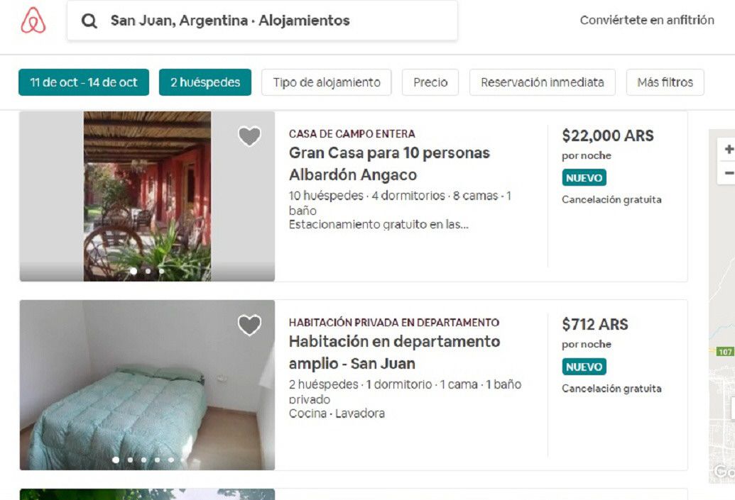 El alquiler de casas particulares es muy utilizado cuando la plaza hotelera se encuentra al 100% de ocupación debido a eventos deportivos, culturales o educativos, entre otros, situación que es un auge en San Juan desde hace al menos 3 años (ver aparte). La página, que se llama Airbnd, ofrece alternativas para que los turistas puedan reservar casas particulares, habitaciones u hospedajes que no son tradicionales. Y San Juan se subió a esta tendencia que crece en el mundo entero. Según las estimaciones oficiales se espera la llegada de casi 50.000 visitantes a la provincia, entre lo que resta de este mes y octubre, gracias a una gran variedad de eventos. De estas actividades la más convocante y que llevó a que sanjuaninos se sumen a esta web de turismo es el Superbike, que será el 12, 13 y 14 de octubre, en el Autódromo El Villicum, de Albardón. Se espera que participen unas 20.000 personas que llegarán de otras provincias y países. Es por esto que las reservas hoteleras ya están al 100% para esa fecha. "La casa está a 10 km del nuevo autódromo de San Juan. Es una zona muy tranquila y de rápido acceso al autódromo", dice una de las publicaciones de la página web, en la que se ofrece una casa de Angaco.