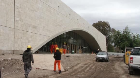 Si bien los 290 obreros trabajan en diferentes frentes, el hall de acceso es uno de los sectores que más avance tiene. Es que todo el revestimiento exterior de travertino está listo, mientras que dentro están puliendo los pisos, colocando los vidrios y terminando el cielo raso.