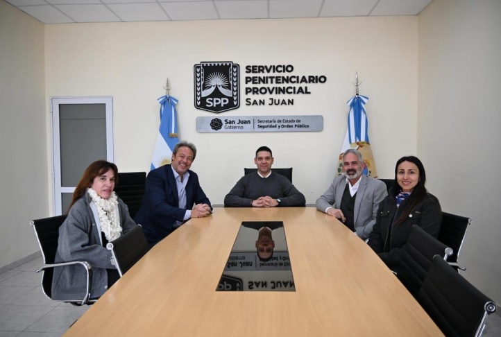 Sebastián Lusardi, director ejecutivo de Grupo L, y Marcelo Delbarba, director de Relaciones Institucionales, visitaron las instalaciones del Penal de Chimbas y mantuvieron una reunión con Carlos Suárez, director del Servicio Penitenciario; la Alcaide Mariela Medina, jefa de