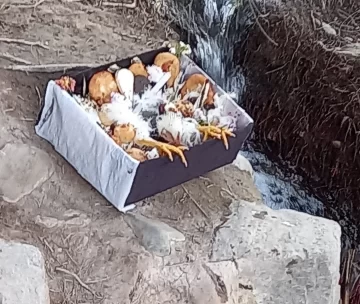 Un joven que hacía deporte, llegó en bicicleta hasta la zona de El Pinar y hizo un descubrimiento que lo dejó impactado. Al costado del arroyo que pasa por detrás del circuito, había una caja de cartón negra conteniendo patas de gallina, plumas, y trozos de pan.