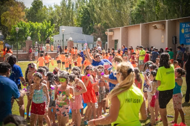 Los chicos comenzaron la guerra de espuma que divirtióa a todos.Después de realizar algunas actividades programadas arrancó la diversión al por mayor en la colonia. Por un lado, los niños comenzaron una guerra de espuma donde no se salvó nadie. Y que sumó a otro grupo. Las personas mayores se sumaron a esta actividad para divertirse junto los chicos y a los coordinadores que terminaron completamente cubiertos de espuma.