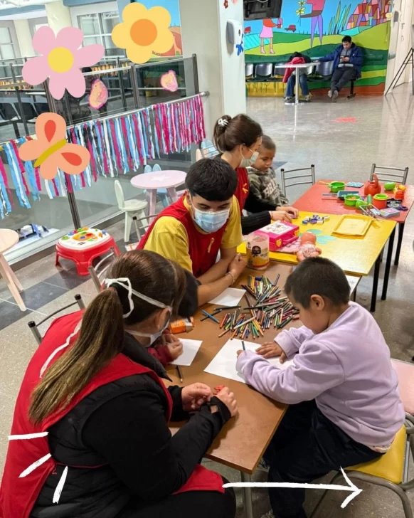 En este espacio también se organiza y prepara el cuerpo de voluntarios, quienes cada mañana suben al tercer piso donde se encuentra el área de internación. Allí acompañamos a los pacientes con juegos, golosinas y artículos de primera necesidad, como papel higiénico, servilletas de papel y botellas de agua, y mantienen un diálogo cercano con las familias para detectar y asistir posibles necesidades relacionadas con medicamentos, trámites, ropa, entre otros requerimientos.