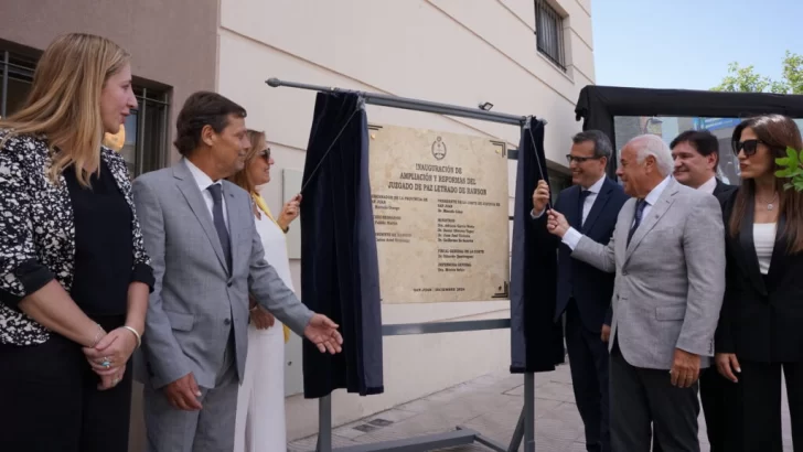La Corte de Justicia de San Juan inauguró la obra de ampliación y remodelación del Juzgado de Paz Letrado de Rawson, en un acto encabezado por su presidente, Marcelo Jorge Lima, y acompañado por los ministros Adriana García Nieto, Daniel Olivares Yapur y Juan José Victoria. También estuvieron presentes la jueza de Paz Letrada de Rawson, Roxana Espín, y el intendente de Rawson, Carlos Munisaga.