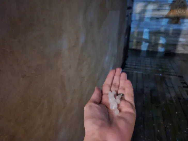El tamaño del granizo que caía como proyectiles varió dependiendo de la zona sanjuanina. En el caso de Santa Lucía y Capital, las piedras oscilaban entre los 3 centímetros. Tal como lo muestra la siguiente imagen.