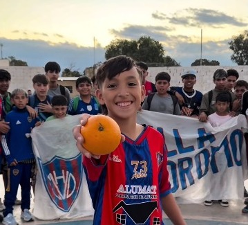 Su familia es netamente sanjuanina pero hace tres años que reside en Mendoza y como visitan frecuentemente la provincia, hay clubes como Aberastain y Caucete que se han anotado en la lista de espera para recibirlo y que haga sus maravillas. “Hay chicos que hasta le han llegado a pedir la naranja que lleva”, sostuvo con humor Valeria, quien también lo acompaña Ian con sus hermanos Bastian (10) y Alma (6).