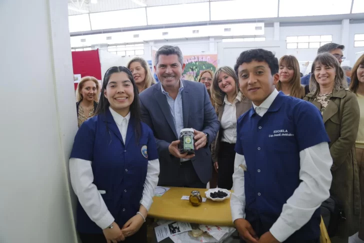 El gobernador Marcelo Orrego asistió este viernes a una muestra de trabajos escolares vinculados a la industria y su impacto en la comunidad, en el polideportivo de la escuela Normal San Martín.
