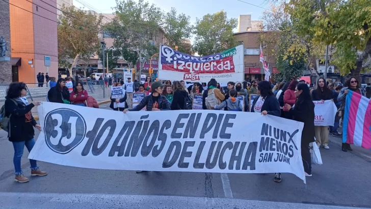 San Juan marchó este martes al conmemorarse los 10 años de la primera marcha “Ni Una Menos”. En la provincia cerca de unas 2 mil personas marcharon por las calles céntricas para luego dirigirse hacia la Estación San Martín donde tuvo lugar un festival artístico. Con fuertes críticas al gobierno de Javier Milei, los manifestantes -en su mayoría mujeres-, hicieron saber su reclamo mediante pancartas y cánticos.