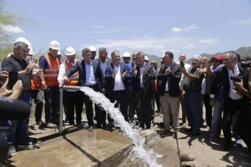 Acompañaron al gobernador, el ministro de Infraestructura, Agua y Energía, Fernando Perea, intendente de Valle Fértil, Mario Riveros; presidente de OSSE, José Luis Beltrán y demás funcionarios.