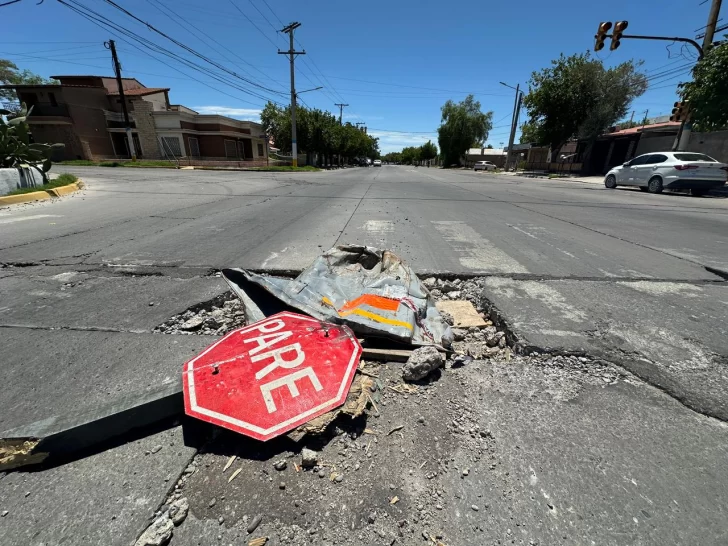 La postal no es nueva. Al igual que el peligro que ocasiona. Ahora, los vecinos del lugar lo señalizaron con una lata y con un cartel de pare que un automovilista chocó y rompió tratando de evadirlo. Se trata de un gran pozo que está en la intersección de calles Mendoza y Estado de Israel, en Rawson. Y que ya provocó caídas.
