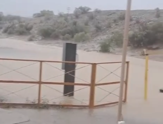 Este lunes, la base operativa del Parque Provincial Ischigualasto amaneció inundada, situación que obligó a suspender todas las excursiones programadas para la jornada.