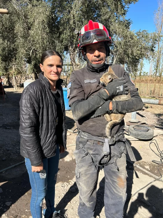 El hecho ocurrió en el domicilio de Leonela Fredes, quien alertó a las autoridades al notar que su mascota había desaparecido y luego escuchar maullidos provenientes de una antigua perforación de agua en el terreno. De inmediato, se activó el protocolo de rescate.