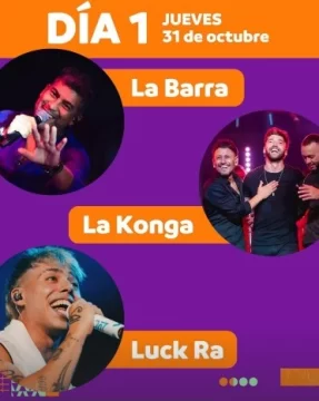 - Sábado 2 de noviembre: Los Palmeras – Abel Pintos – Luciano Pereyra