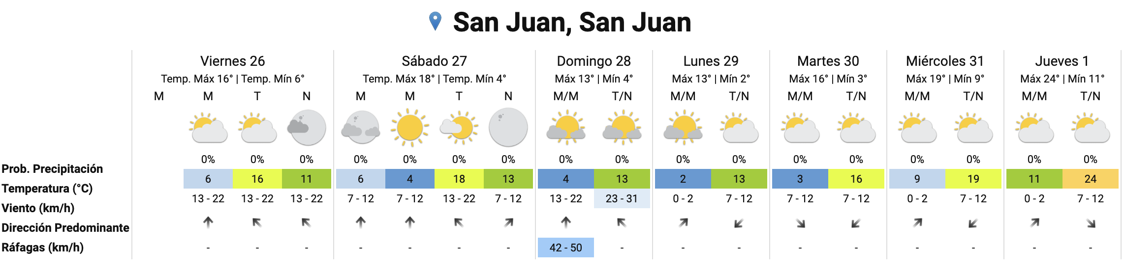 Luego de la jornada agradable del jueves, el estado del tiempo en San Juan cambiará bruscamente este viernes debido a la llegada del viento Sur.