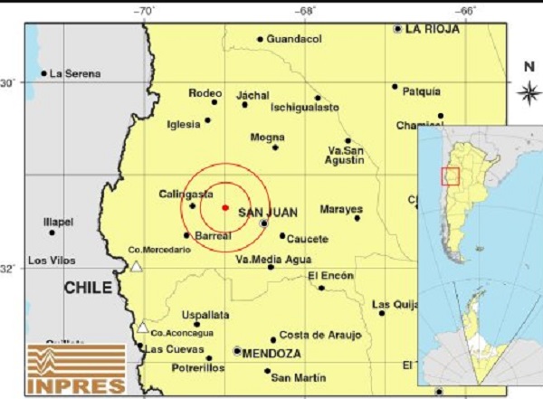 Según datos que proporcionó el INPRES, el epicentro del movimiento telúrico fue a 39 kilómetros al este de Calingasta.