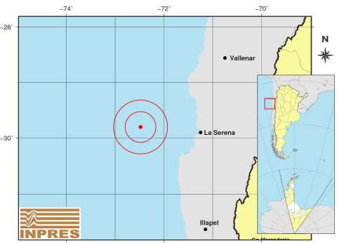 Tuvo lugar a las 2:40:44 de este lunes en el Océano Pacífico, 94 km al Oeste de Coquimbo, en el vecino país de Chile.