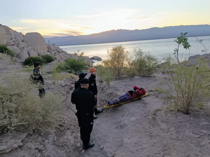 Este sábado por la tarde, la división de Bomberos del D9 debieron intervenir en el rescate de una mujer que sufrió una caída en la zona de El Castillito, en el dique de Ullum.
