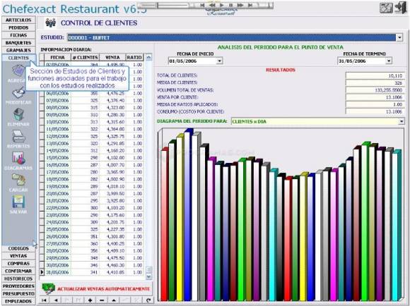 Con Chefexact Restaurant Management es posible confeccionar las fichas de tapas, bebidas, banquetes, vinos, gestionar la bodega y el almacén, comprobar existencias, mejorar precios, controlar a los clientes y proveedores, realizar y recoger pedidos, hacer inventarios, entre otras cosas. Todo esto con una interfaz intuitiva y fácil de usar.