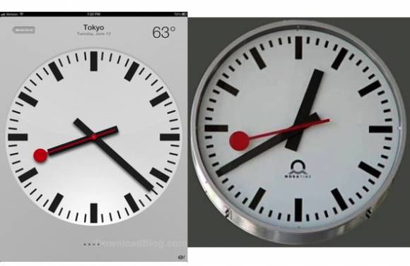En la actual industria de los juicios de patentes, el gigante de la manzanita está acostumbrado a ser, casi siempre el que reclama. Pero hace un tiempo, la empresa de ferrocarriles suizos Schweizerische Bundesbahnen llevó a Apple ante la Corte porque, según ellos, habían plagiado el diseño del reloj que se encuentra en la mayoría de las estaciones de trenes de Suiza. Este diseño, propiedad de la firma Mondaine Watch Ltd, es, prácticamente, un símbolo nacional. Para dejar claro el motivo de la demanda, el representante de la BBS, Christian Ginsig, declaró: "Estamos orgullosos de que Apple usara el reloj del sistema ferroviario suizo. Confirma una vez más el valor de su diseño. Pero la compañía lo hizo sin autorización’. Por este motivo, Apple ha tenido que llegar a un acuerdo económico con sus propietarios que, según trascendió, sería de unos 20 millones de francos suizos.