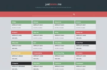 Crear cuentas en nuevos servicios o sitios web suele ser sencillo. Basta con registrarse y, a veces, confirmar el registro mediante un link recibido en nuestro correo electrónico. Pero no suele ser fácil, casi siempre por desconocimiento o por interés del propio sitio, eliminar completamente las cuentas creadas. El sitio web justdelete.me ofrece una serie de botones que facilitan dicha tarea. Los botones son enlaces a la página específica a la que debemos ingresar para solicitar la baja de una cuenta, indicando con colores la mayor o menor dificultad del trámite. Los links marcados en verde sólo requieren uno o dos pasos para completar la baja, tal es el caso de sitios como Facebook, Google, o Hotmail. Los amarillos necesitan algunas confirmaciones adicionales. Los botones con una marca roja suponen un verdadero desafío por la cantidad de pasos y confirmaciones que deben completarse (Skype, Sonico y iTunes son algunos ejemplos). Por último, los links marcados en negro hacen referencia a sitios en los que no es posible darse de baja, como en Pinterest, Wikipedia o WordPress.com.