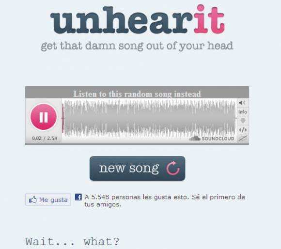 Cuando se pega una canción de esas que no pueden dejarse de tararear, silbar o cantar, puede recurrirse a Internet para despegarla. Unhearit es un sitio que evitará torturar a los compañeros de trabajo o familiares cuando se tararea constantemente una canción que quizá se pegó de una noche de fiesta.
