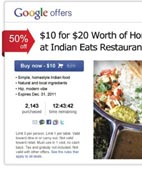 Google quería tener su propio sistema de descuentos después de ver cómo funcionaba Groupon y lo primero fue intentar comprarlo, pero Groupon rechazo la oferta. Ahora, Google ha creado su propio sistema de descuentos con el nombre de Google Offers.