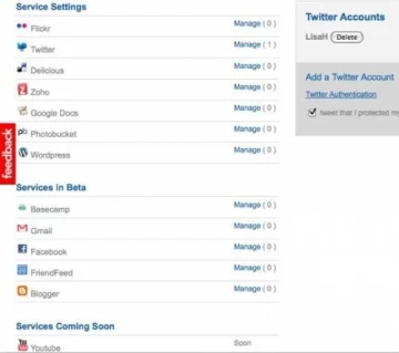 Soporta varios de los servicios más habituales tales como Flickr, Twitter, Gmail (correo electrónico), Google Docs (documentos de oficina en Internet), WordPress (herramienta para crear blogs), Delicious, etc.