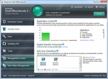 Kaspersky también tiene su paquete de solución integral de seguridad informática para pequeñas empresas. Se trata de Small Office Security, un producto ya desde el comienzo del proceso de instalación, busca cualquier programa de seguridad en conflicto que estuviese instalado en el sistema para evitar problemas. Una vez instalado, el programa pide simplemente la activación del producto y ya estará operativo al 100%.