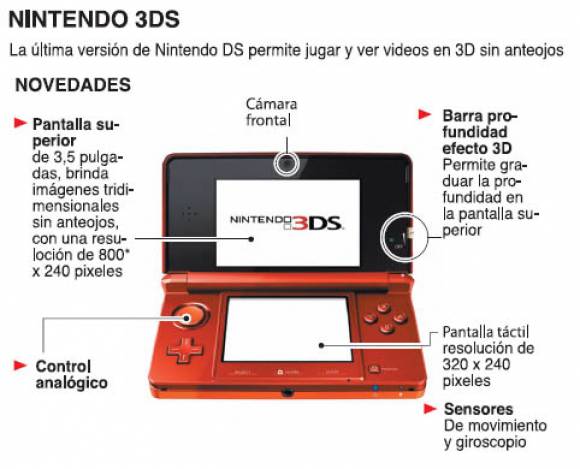 Además, la consola está dotada de dos cámaras que pueden grabar en 3D en una resolución de 640 x 480.
