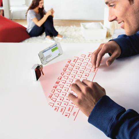 En la tienda virtual Brookstone (www.brookstone.com) han puesto a la venta un accesorio de lo más práctico. Se trata de un llavero que es capaz de proyectar sobre una superficie plana un teclado que puede utilizarse para ingresar datos en una tablet o smartphone. Cuenta con un sensor óptico que hace un seguimiento de la posición de los dedos sobre la imagen proyectada y convierte las pulsaciones en datos. Se conecta a cualquier dispositivo vía Bluetooth y posee una batería de li-ion (iones de litio) que puede recargarse mediante una conexión USB. Estará disponible desde mediados de octubre y su precio es de $99,99 dólares. Es de esperar que el año que viene podamos tener gadgets de este tipo disponibles en Argentina.