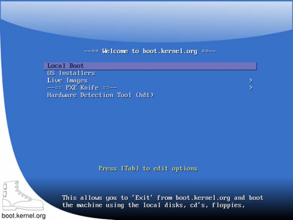 BKO (boot.kernel.org) es una herramienta que permitirá arrancar el sistema operativo Linux desde Internet.