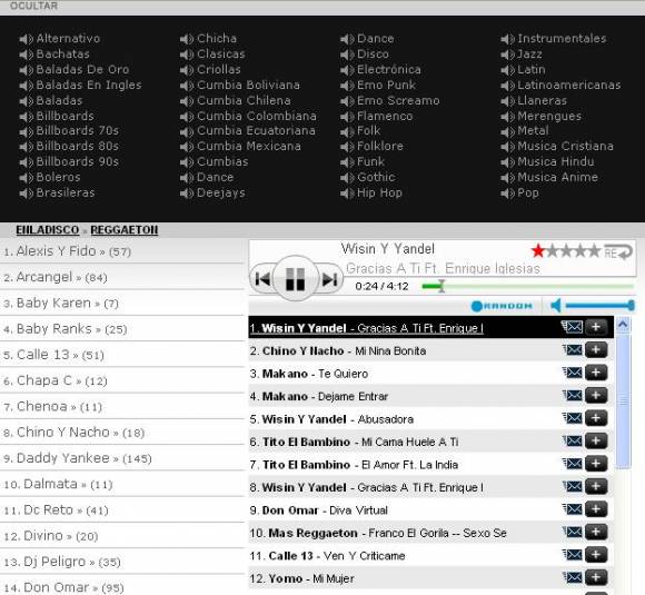 Quizá lo mejor de este sitio es que ya tiene pre-definidas listas de música por estilo (Reggaeton, Flamenko, Cumbia, Tango, entre muchos otros). Se ingresa al sitio, se hace clic en un estilo, y a escuchar. Para quienes desean reproducir música aleatoria “en el acto”, su lugar es www.enladisco.com.